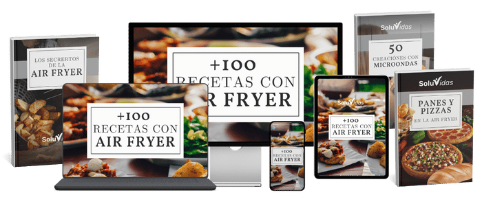 Una vez completes tu compra, recibirás en tu correo electrónico el ebook “+100 Recetas con Air Fryer” junto con los 3 bonos de regalo. Todo en formato digital para que puedas acceder de inmediato desde tu celular, tablet o computadora.